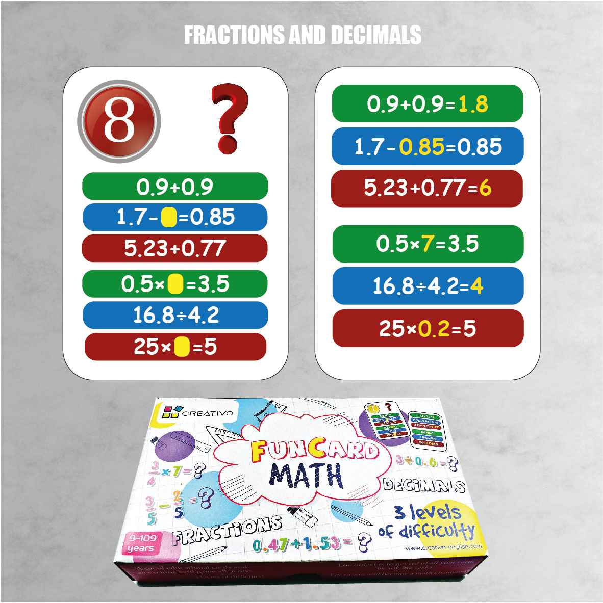 Fun Card Math (ułamki zwykłe i ułamki dzisiętne)